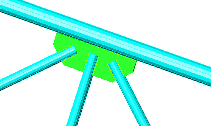Using the truss nodes - gusset plate steel connection type, you can connect bars converging at the truss node.