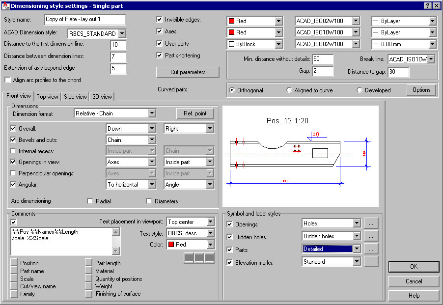 parameters of dimensioned curved parts