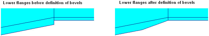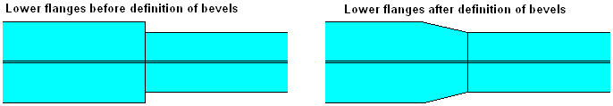 For flanges of 2 adjacent segments of different thicknesses and/or widths, you can define bevels of flange plates.