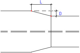 After you select Generate bevels, you can define plate bevel parameters for the upper and lower flanges by specifying a value of the bevel line inclination (for example, 1:4). The length of a bevel segment is calculated form the same formula given for bevels concerning flange widths. An example of a bevel for the connection of lower flanges (including one inclined) is illustrated in the drawing below.
