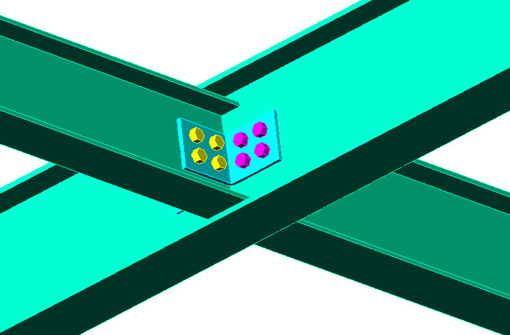 Using the clip angle - beams/beam web - double sided steel connection type, you can connect secondary beams to the web of the main beam with either a bolted or a welded connection. The welded connection can be to the secondary beam, to the main beam, or to both.