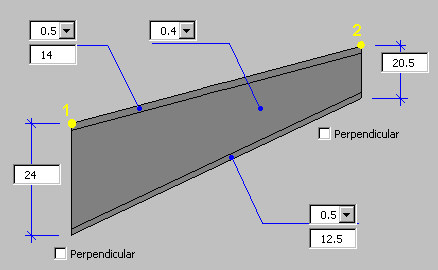 - Clear the Perpendicular options at the beginning and at the end of the beam (for points no. 1 and no.2).