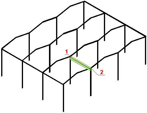 - In the drawing area, click to specify the position of point 1 (the beginning of the plate girder) and point 2 (the end of the plate girder) as shown.