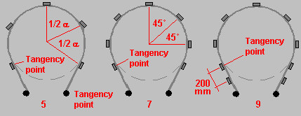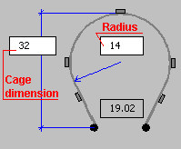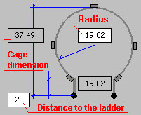 The radius of the hoop is the user-defined radius of the internal edge of a hoop profile. The cage dimension is user-defined. This value is the distance between the external edge of a hoop profile and the axis of the ladder main bar. The hoop part joining the ladder bar is a straight segment that is tangent to the internal hoop edge.