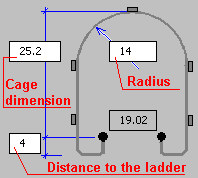 The cage dimension is user-defined. This value is the distance between the external edge of a hoop profile and the axis of the ladder main bar.