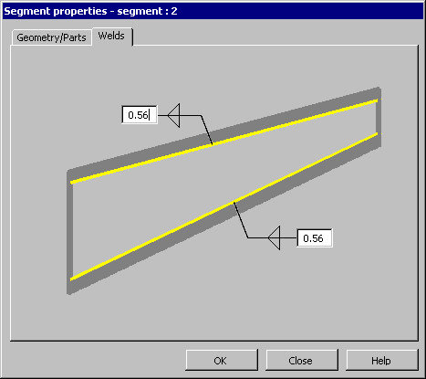 Use the Welds tab of the Segment properties dialog to define parameters of welds of a selected segment of a multisegment beam.