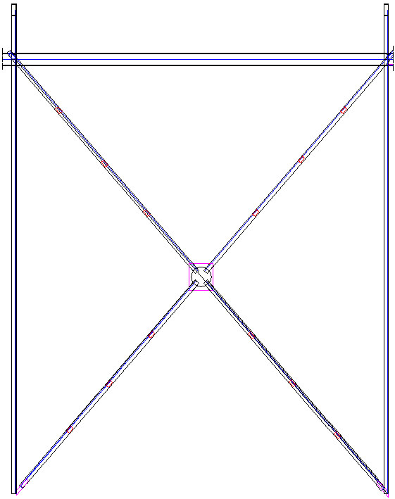 - Draw an auxiliary line of the frame bracing between 2 columns using the AutoCAD® – Draw > Line command (see the drawing below). Because both columns are of equal height, the other diagonal will be a mirror image of the diagonal positioned on the defined auxiliary line.