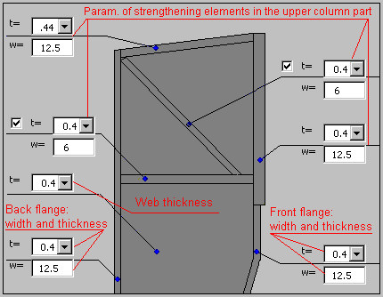 After you have defined the plate girder dimensions, use the Parts tab to define parameters and dimensions for plates and ribs.