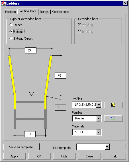 The current version of the software offers 3 types of extended vertical elements of a ladder: