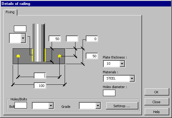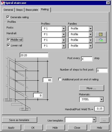 - Handrail/Post Weld Th - define a thickness of the weld joining the handrail with posts.