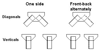 On the Remaining verticals tab, you can determine the method of positioning asymmetric profiles (one side or front-back alternately), as shown in the drawing below.