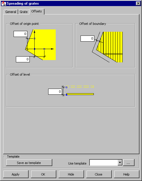 On the Offsets tab of the Spreading of grates dialog, define grate offset values.