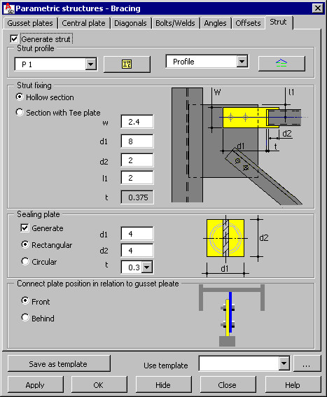 Under Connect plate position in relation to gusset plate,select either Front or Behind.