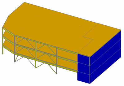 For example, create a structure with two levels. A part of the structure is created from steel beams, columns and bracings and the other part are created from concrete beams and columns. The walls and slabs over the levels are made from concrete. Some joints are created between bracings and beams.