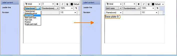 The labels will display the joint name which includes the labeled elements (plates). This token change can be made for each element.