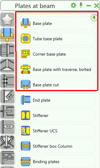 Base plate connections are grouped in the Plates at beam category of the Connection vault.