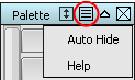 To collapse/expand the Control Panel, Palette, Shelves, or control windows automatically, click the menu icon on the title bar and select Auto Hide. With Auto Hide selected, only the title bar displays until you move your cursor over it.