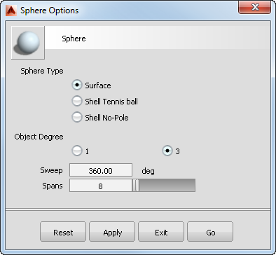 While an option box is open, you can’t perform any operation in the view windows, or select any tool, until you have closed the window by clicking the Exit or Go button.
