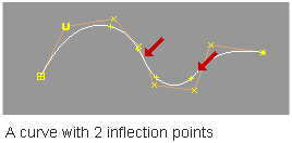 The Break curve at inflections tool highlights the inflection points on the picked curve(s) with red arrows.