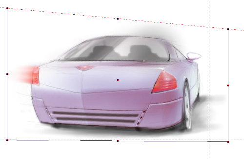 Select and move the right corner handle with the to make the image wider following the 2 point perspective guide lines. (Action = Constrained corner deformation)