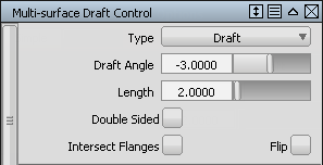 In the Multi-surface Draft Control window, change the settings to a Draft Angle of -3 degrees, and a Length of 2, and click Update.