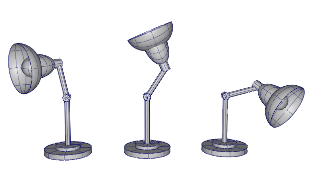 You can position the lamp in many different poses, by picking and rotating individual groups around the x, y, and z axes.