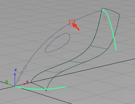 The Rail surface defaults to a birail, which has two path curves. Now change the rail surface settings to create a monorail, with only one path curve.