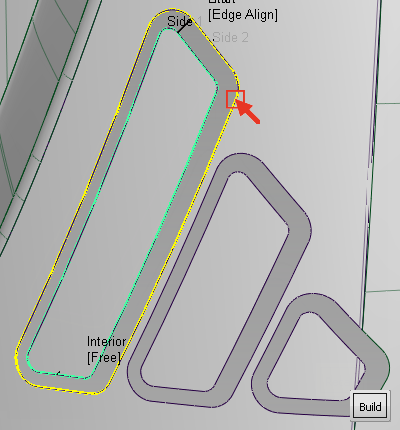 - You are prompted to pick the input surface curves. Click the edge of the first logo offset surface as shown.