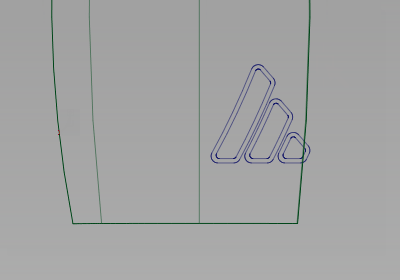 - Maximize the Left view. You can see that the logo curves extend beyond the surface by a small amount. The easiest solution is to extend the surface slightly so the curves fit.