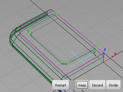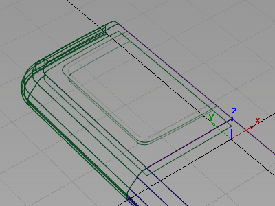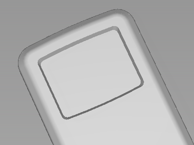 Offset the outline of the casing to create the screen curves. Then Project them onto the front face to create Curves-on-Surface. These curves-on-surface can then be used to Trim out the aperture for the display screen.