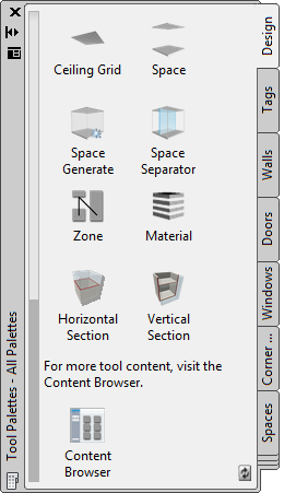 Use this procedure to configure the default Material tool and use it to apply an existing material definition to a component of an AEC object in a drawing. By default, the tool applies the Standard material definition, but you can modify the tool properties to specify any of the materials defined in the Material Definitions (Imperial).dwg or Material Definitions (Metric).dwg files.