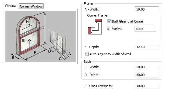 Use this procedure to change the default dimensions of a regular window or corner window style.