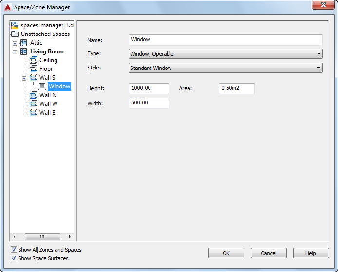 change the area of a surface opening | enter values for Area, Height, or Width of the opening. Note: For a 3D freeform space opening, you cannot edit the height or width on this worksheet. You can change the width and height of a 3D freeform surface opening using grips.