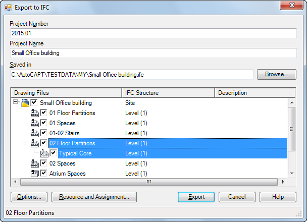 If the drawings were assigned to levels as part of the AutoCAD Architecture project, a corresponding label is displayed by default under IFC Structure. Otherwise, they are mapped to Level 1 by default.