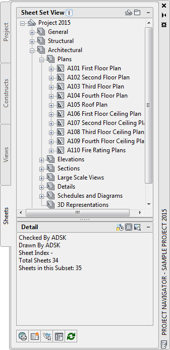 When you create a new project, a unique sheet set is created for this project. The project sheet set is displayed on the Sheets tab of the Project Navigator.
