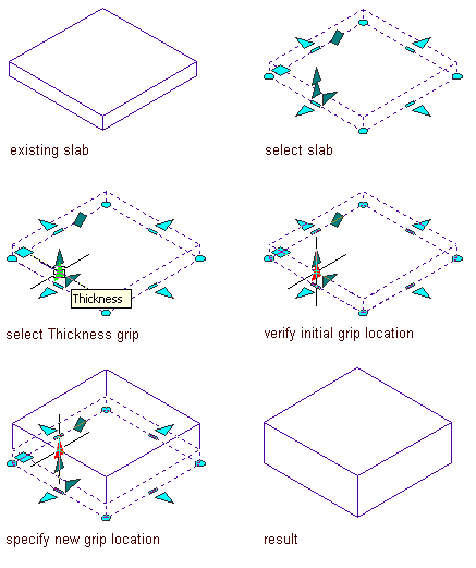 Changing the thickness of a slab using the Thickness grip