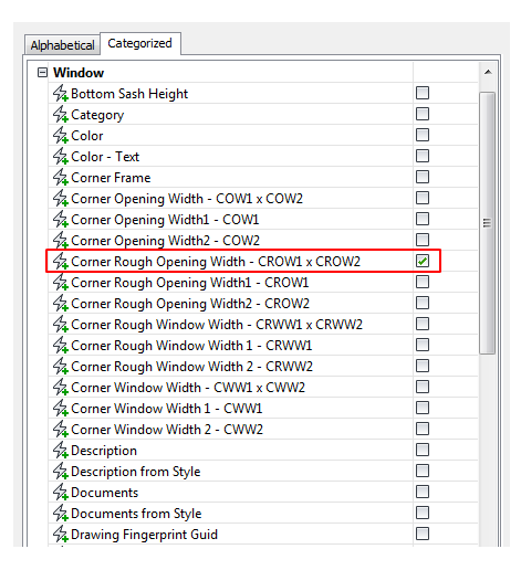 Under Window Styles select Corner Rough Opening Width – CROW1 x CROW2.