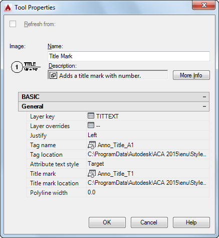| Layer Key | General | By default, a title mark that is associated to a callout tool is inserted on the same layer as the model space view generated. You can however define a different layer for the title mark by selecting a different layer key here. |