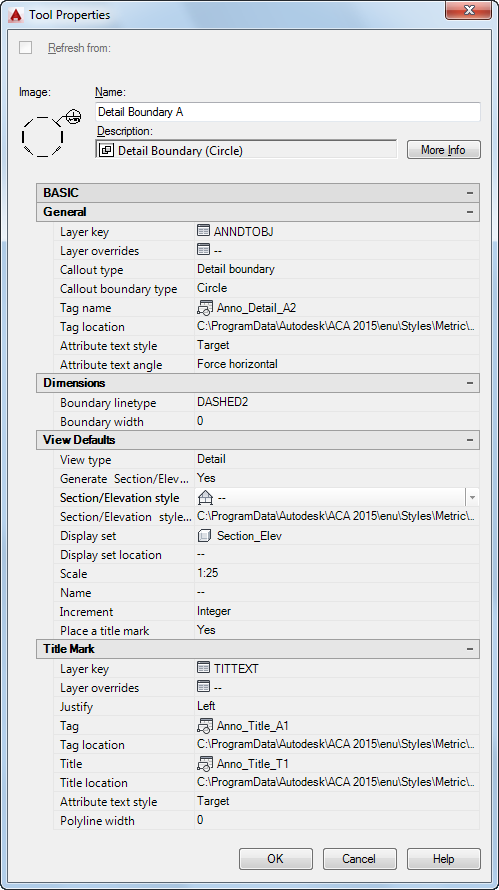 | Boundary linetype | Detail Boundary | Defines the linetype of the detail boundary. |