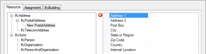 In the IFC Resource and Assignment dialog box, on the Resource tab, expand an IFC resource category (for example, IfcAddress).