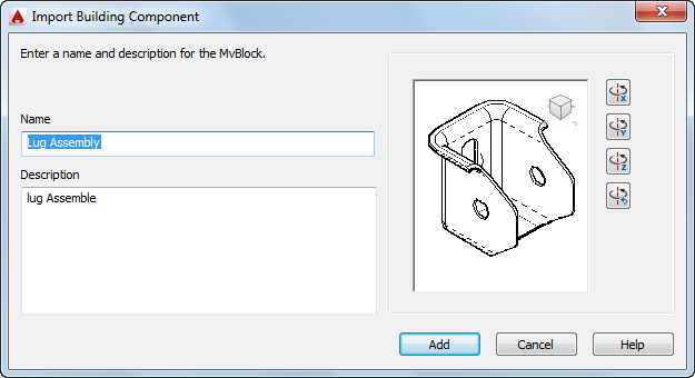 This opens the Import dialog box where you can specify a name, description, and change the orientation of the block or multi-view block during insertion.