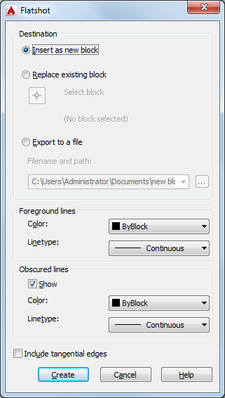 Closes the dialog box temporarily while you select the block you are replacing in the drawing. When you finish selecting the block, press Enter to re-display the Flatshot dialog box.