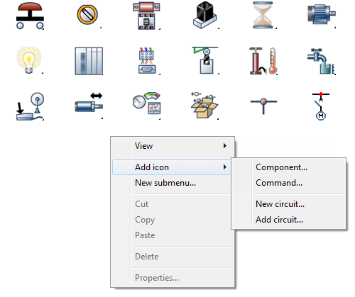 You can alternately select Command, New Circuit, Add Circuit or New Submenu depending on which type of icon you want to add.