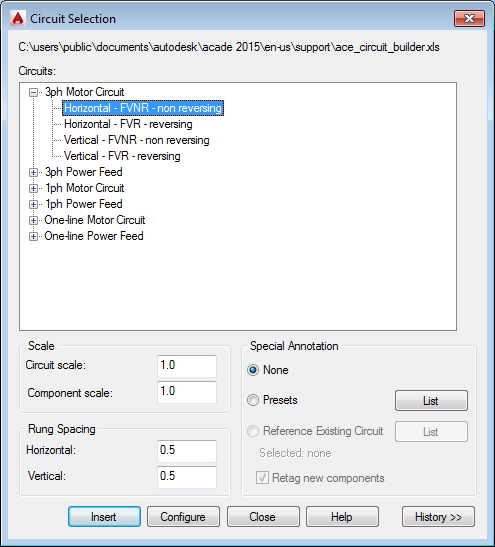 A circuit is made up of individual circuit elements and the wiring that connects them. Circuit Builder inserts a template drawing. This template contains the base wiring for the circuit and strategically positioned “marker blocks”.