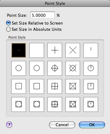 Sets the point display size as a percentage of the screen size. The point display does not change when you zoom in or out.