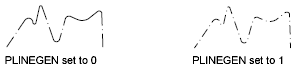 The PLINEGEN system variable controls the linetype pattern display around and the smoothness of the vertices of a 2D polyline. Setting PLINEGEN to 1 generates new polylines in a continuous pattern around the vertices of the completed polyline. Setting PLINEGEN to 0 starts and ends the polyline with a dash at each vertex. PLINEGEN does not apply to polylines with tapered segments.