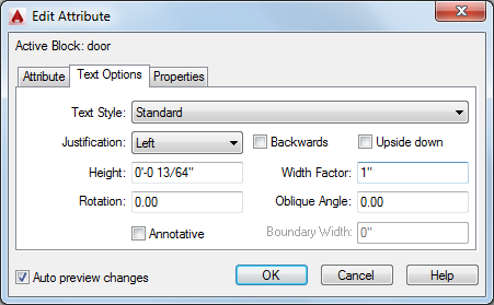 Specifies the text style for attribute text. Default values for this text style are assigned to the text properties displayed in this dialog box.