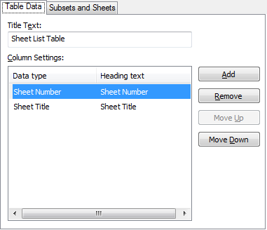 Displays a list of the column definitions in the sheet list table. Each line in the list represents a column. The top-to-bottom order of the list represents how the columns will be displayed in the table (left to right).