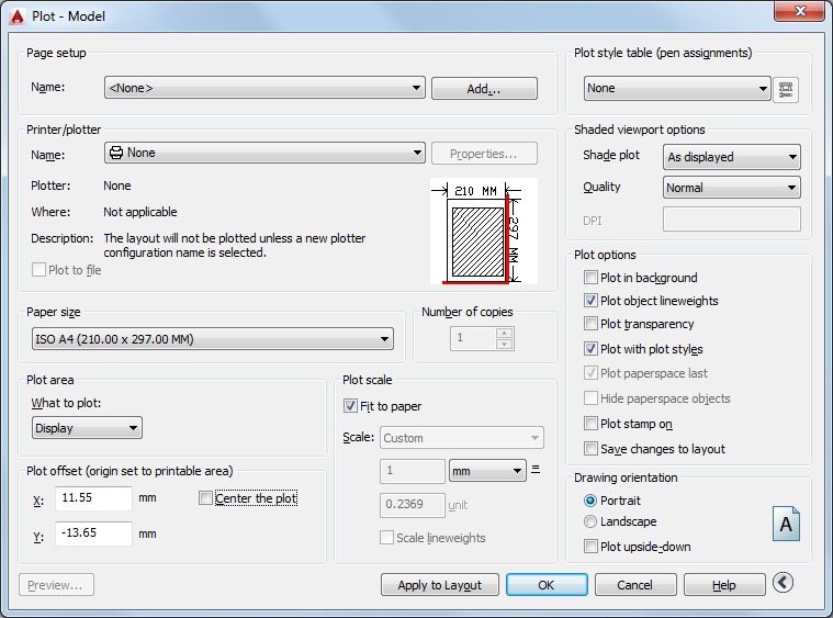 Specifies how views are plotted. To specify this setting for a viewport on a layout tab, select the viewport and then, on the Tools menu, click Properties.