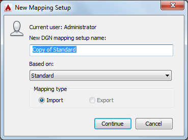 Opens the Modify DGN Mapping Setup dialog box. Depending on the mapping type selected (Import or Export), the appropriate import/export dialog box is displayed.